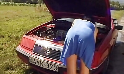 Mature blondie sucks on a big white cock in her mouth and gets fucked in retro